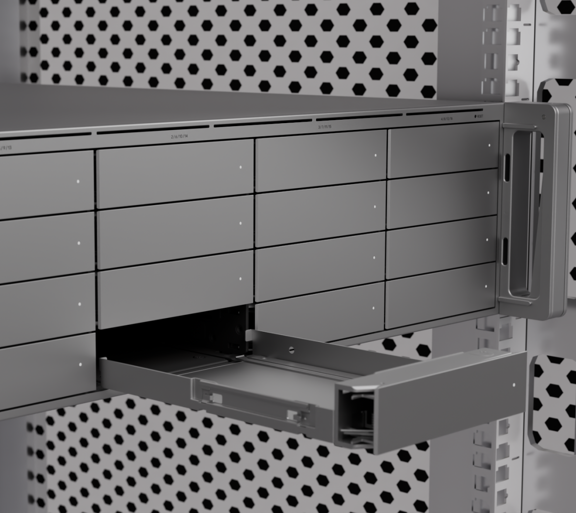 - Возможность расширения хранилища с помощью дополнительных 16-дисковых модулей