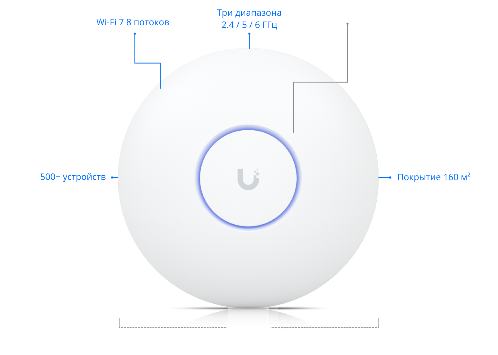 UniFi U7 Pro Max сочетает передовые технологии Wi-Fi 7, мощное оборудование и фирменную надёжность Ubiquiti — универсальное решение для современных беспроводных сетей с высокой нагрузкой.