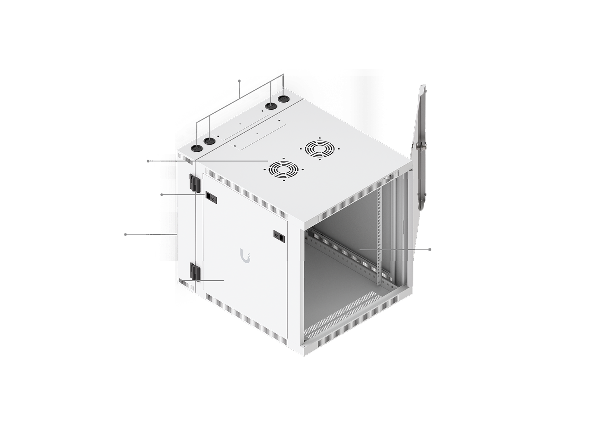 Ubiquiti UACC-Rack-12U-Wall-SW-P — настенный шкаф формата 12U, поставляемый в полностью собранном виде. Оснащён передней дверью из закалённого стекла, задней распашной металлической дверью, встроенными вентиляторами и съёмными запираемыми боковыми панелями. Предусмотрены удобные кабельные вводы, благодаря чему шкаф подходит для размещения 19-дюймового сетевого и серверного оборудования в офисах, технических помещениях и небольших серверных.