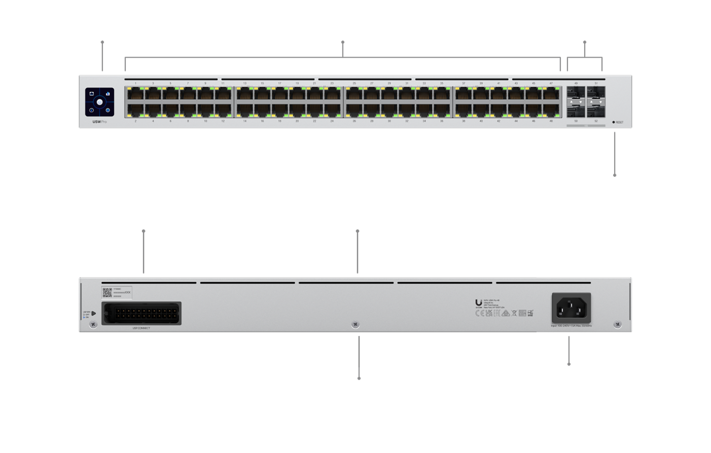 UniFi Switch Pro 48 (USW-Pro-48) — профессиональный управляемый коммутатор старшего уровня в линейке UniFi, предназначенный для корпоративных сетей, серверных и распределённых инфраструктур. Он сочетает высокую производительность, поддержку функций Layer 2 и Layer 3 и централизованное управление через экосистему UniFi.