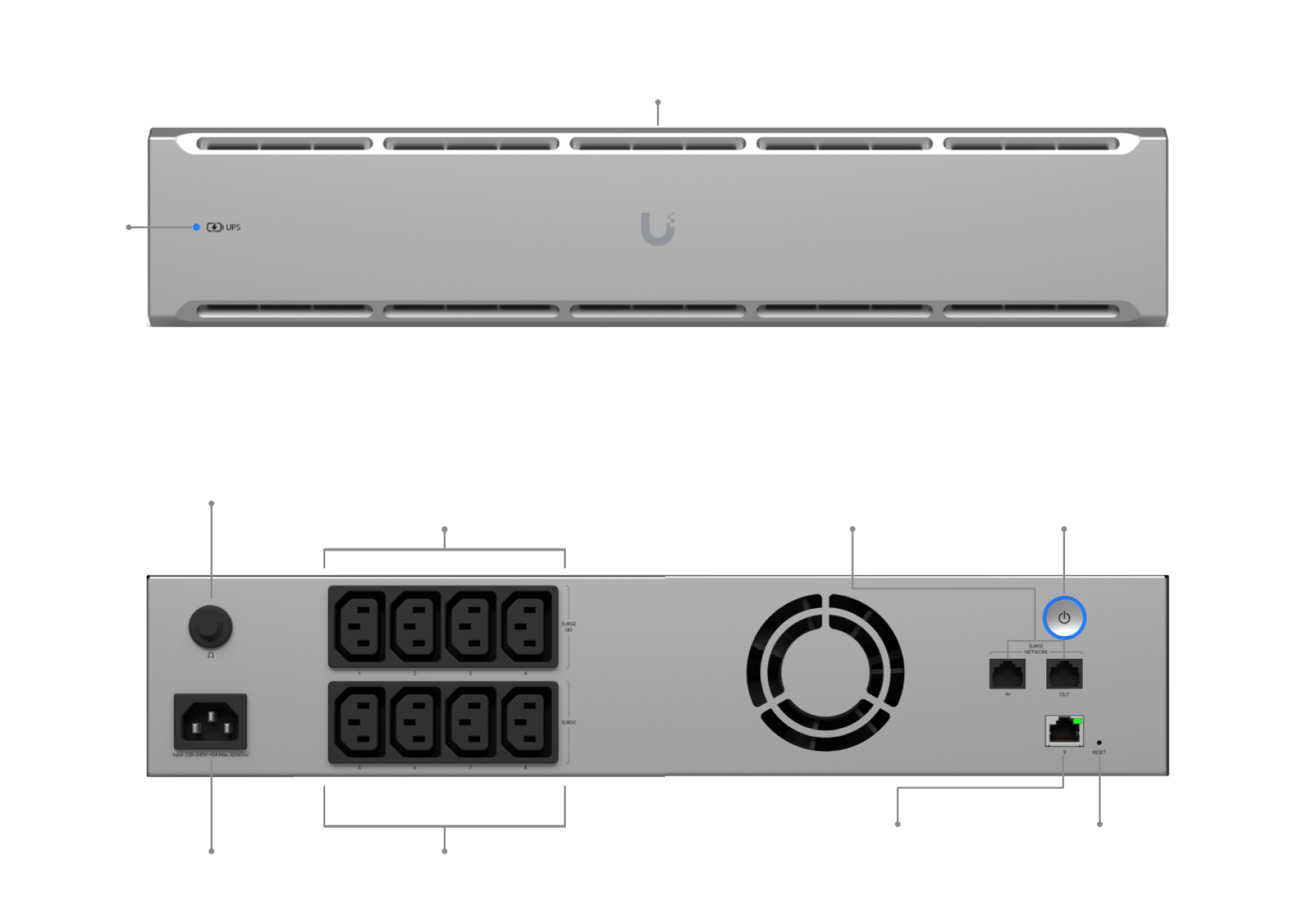 UniFi UPS 2U — интеллектуальный источник бесперебойного питания мощностью 1,5 кВА (1 000 Вт) в прочном металлическом корпусе 2U для установки в стойку. Обеспечивает защиту сетевого и серверного оборудования от скачков напряжения, перегрузок и отключений электроэнергии, гарантируя бесперебойную работу инфраструктуры.