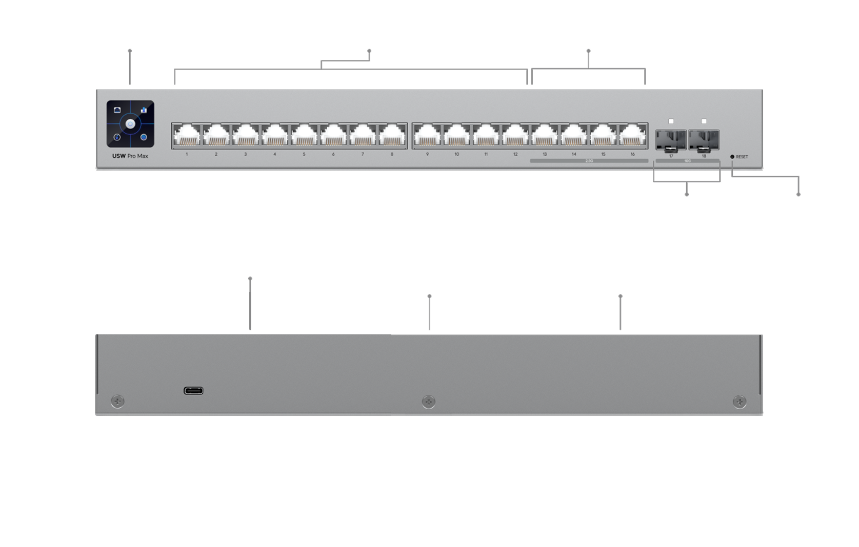 Управление осуществляется через платформу UniFi Network, где администратор может централизованно настраивать, обновлять и мониторить все устройства сети. Благодаря глубоким возможностям интеграции, Pro Max 16 легко вписывается в существующую инфраструктуру и масштабируется по мере роста компании. Это универсальное решение, объединяющее производительность, надёжность и элегантность — всё, чего требует современная сеть.