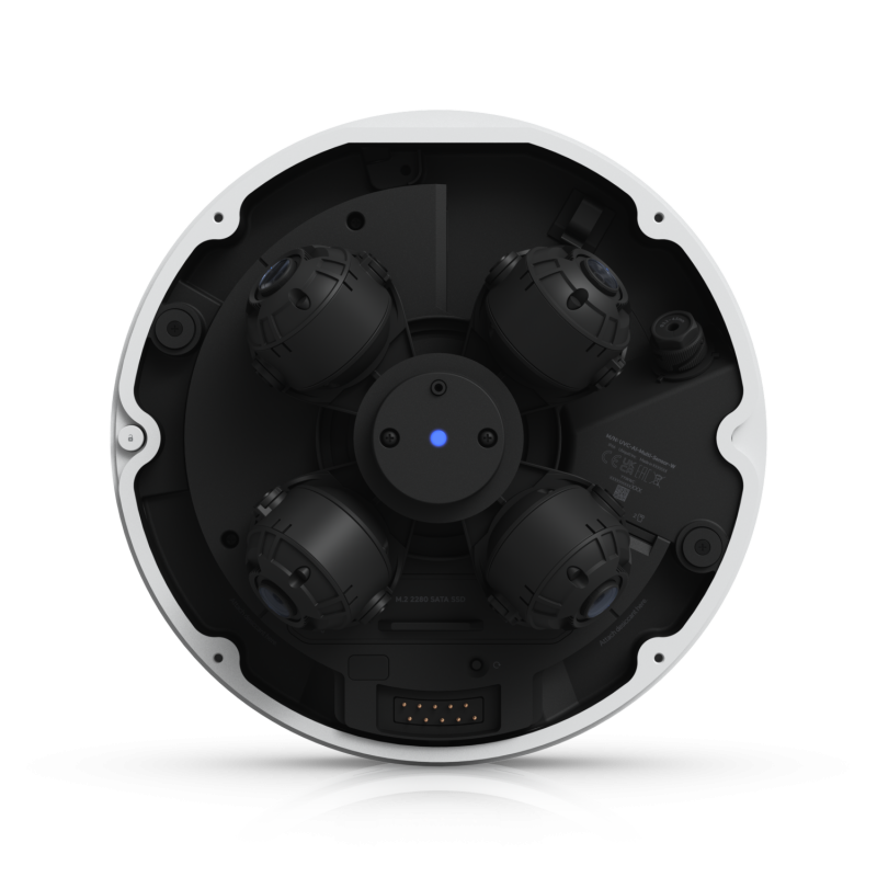Ubiquiti AI Multi Sensor 4 — профессиональная всепогодная 32-мегапиксельная камера с питанием по PoE++. Оснащена четырьмя независимыми 8-мегапиксельными сенсорами и мощным процессором Multi-TOPS AI, обеспечивающим интеллектуальное распознавание лиц, автомобильных номеров и различных объектов в реальном времени.